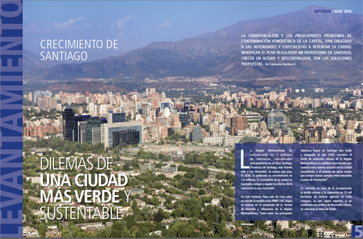 Una de las propuestas para lograr ciudades sustentables es fomentar el uso de transporte público. Sin embargo, ante la defi ciencia del actual sistema y frente al mayor poder adquisitivo de los chilenos, el parque automotriz ha crecido de forma insostenible, convirtiendo a Santiago en una megalópolis con altos índices de contaminación.
