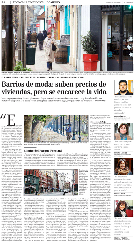 "El barrio está, entre comillas, de moda. Porque igual hay gente que viene por primera vez o que lo descubre caminando".Paulo Dávalos, Dueño de la tienda de artesanía Alicanto, en avenida Italia"Los vecinos esperan que el barrio no se convierta en una Suecia 2.0".Myriam SánchezPresidenta de la junta de vecinos Santa Isabel N° 6