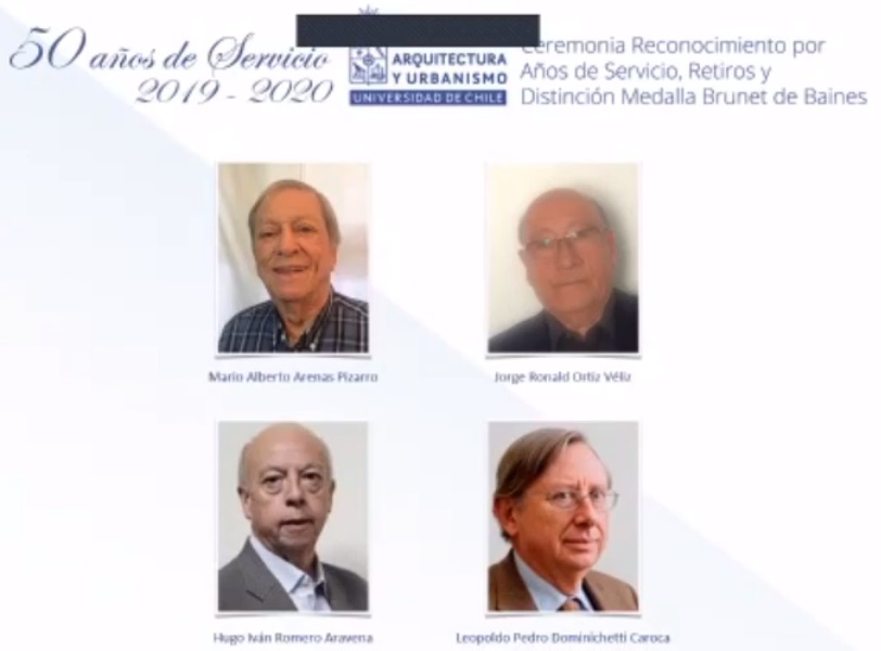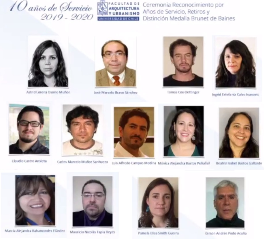 Acompañaron también esta Ceremonia, que conmemora los 171 años de la Arquitectura en Chile, el Decano de la Facultad de Ciencias Físicas y Matemáticas de la U. de Chile, Prof. Francisco Martínez, y Decano de la Facultad de Ingeniería de la Universidad de Santiago de Chile, Juan Carlos Espinoza. El evento reconoció conjuntamente a los y las galardonados el año 2019 y 2020, ya que debido a la crisis social no se pudo realizar la tradicional ceremonia de Aniversario en noviembre de 2019.