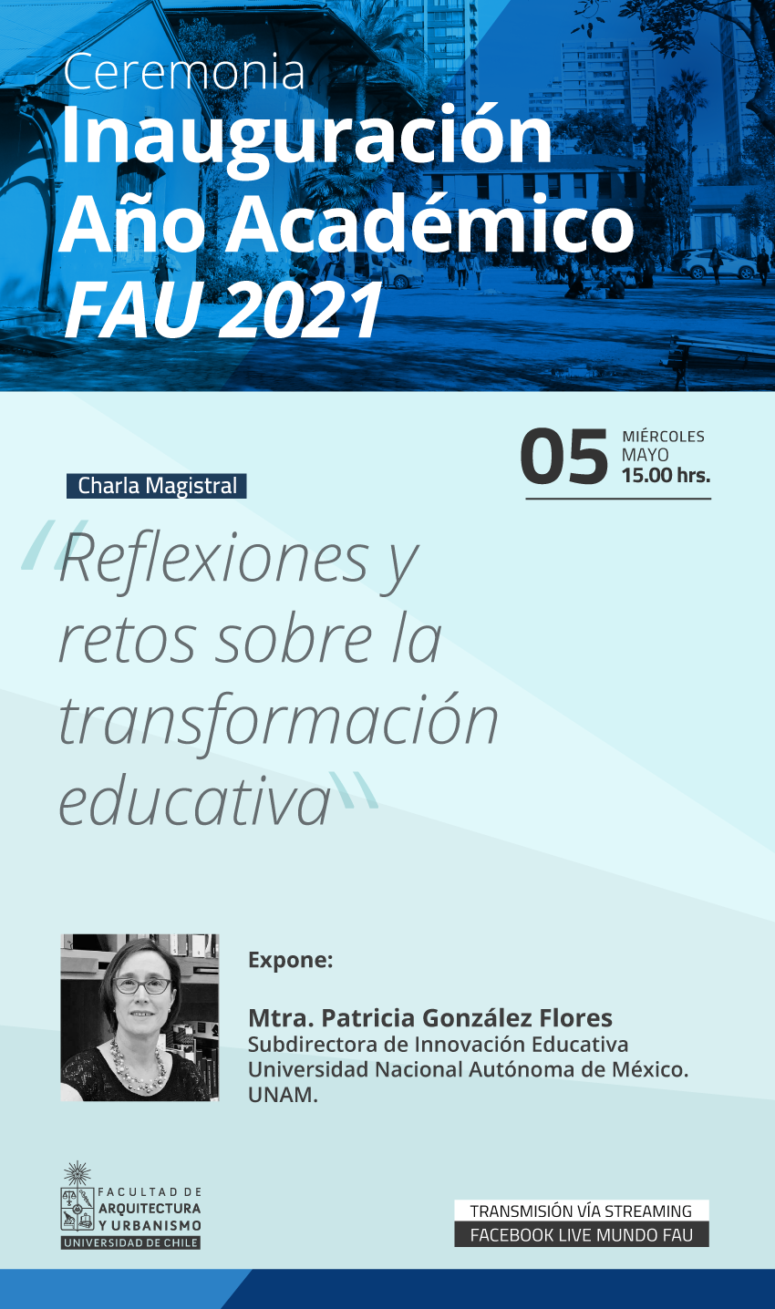A través de una Conferencia remota se realizó este 5 de mayo el tradicional acto de Inauguración de Año Académico 2021 que reunió a las Escuelas de Pregrado y Posgrado de la Facultad de Arquitectura y Urbanismo de la Universidad de Chile.