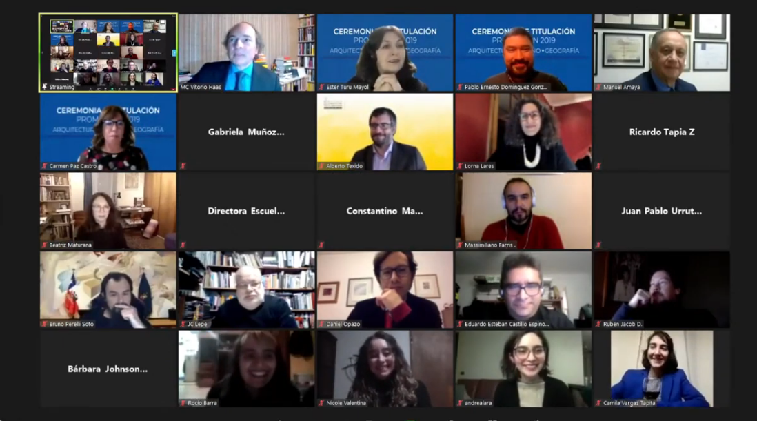 Tras las palabras de la Directora de la Escuela de Pregrado, se dio inicio al proceso de titulación de cada estudiante. Acompañaron a los egresados y egresadas de la carrera de Arquitectura los profesores y profesoras Albert Tidy, Alberto Fernández, Beatriz Maturana, Cecilia Wolff, Claudia Torres, Constantino Mawromatis, Daniel Opazo, Emmanuel Giannotti, Fernando Marín, Francis Pfenniger, Gabriela Manzi, Guillermo Crovari, Humberto Eliash, Jeannette Roldán, Jorge Iglesis, Juan Lund, Leopoldo Prat, Lorenzo Berg, Manuel Amaya, Mario Marchant, Mario Terán, Mauricio Baros, Max aguirre, Camilo Arriagada, Maximiano Atria, Miguel Cassaus, Mirtha Pallarés, Mónica Bustos, Yasna Contreras, Osvaldo Moreno, Paola Velásquez, Emanuel Giannotti, Patricio Hermosilla, Patricio Morelli, Ricardo Tapia e Yves Besançon.