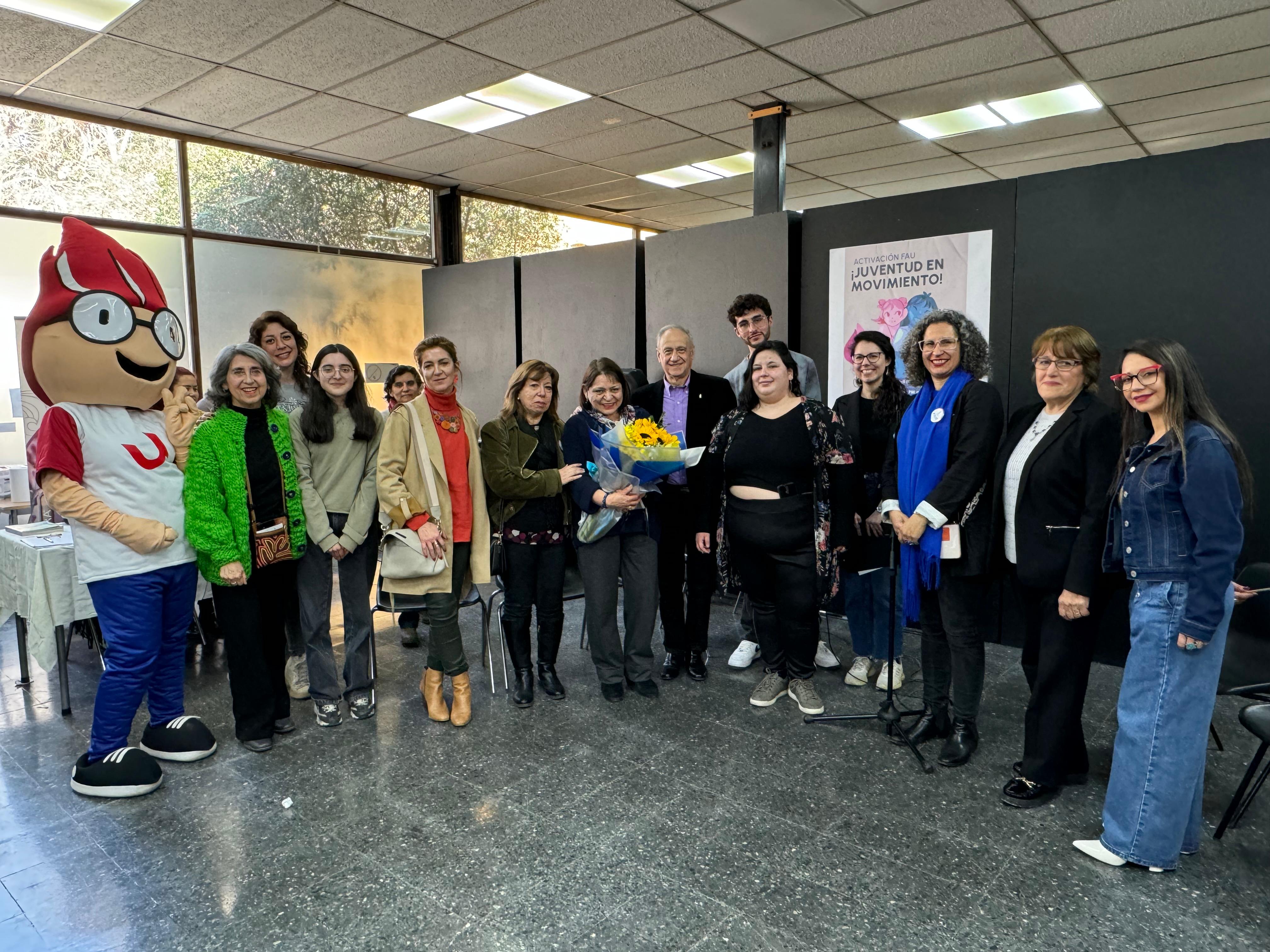 Durante la Ceremonia también se le rindió homenaje a la Asistente Social Jefa de Bienestar Estudiantil de la FAU, Eliana Henríquez, quien tras 43 años de servicio jubilará prontamente. Esta iniciativa surgió de los mismos estudiantes, quienes junto con regalarle un ramo de flores, entregaron un hermoso mensaje de cariño a través de las palabras del estudiante Víctor Clavería.