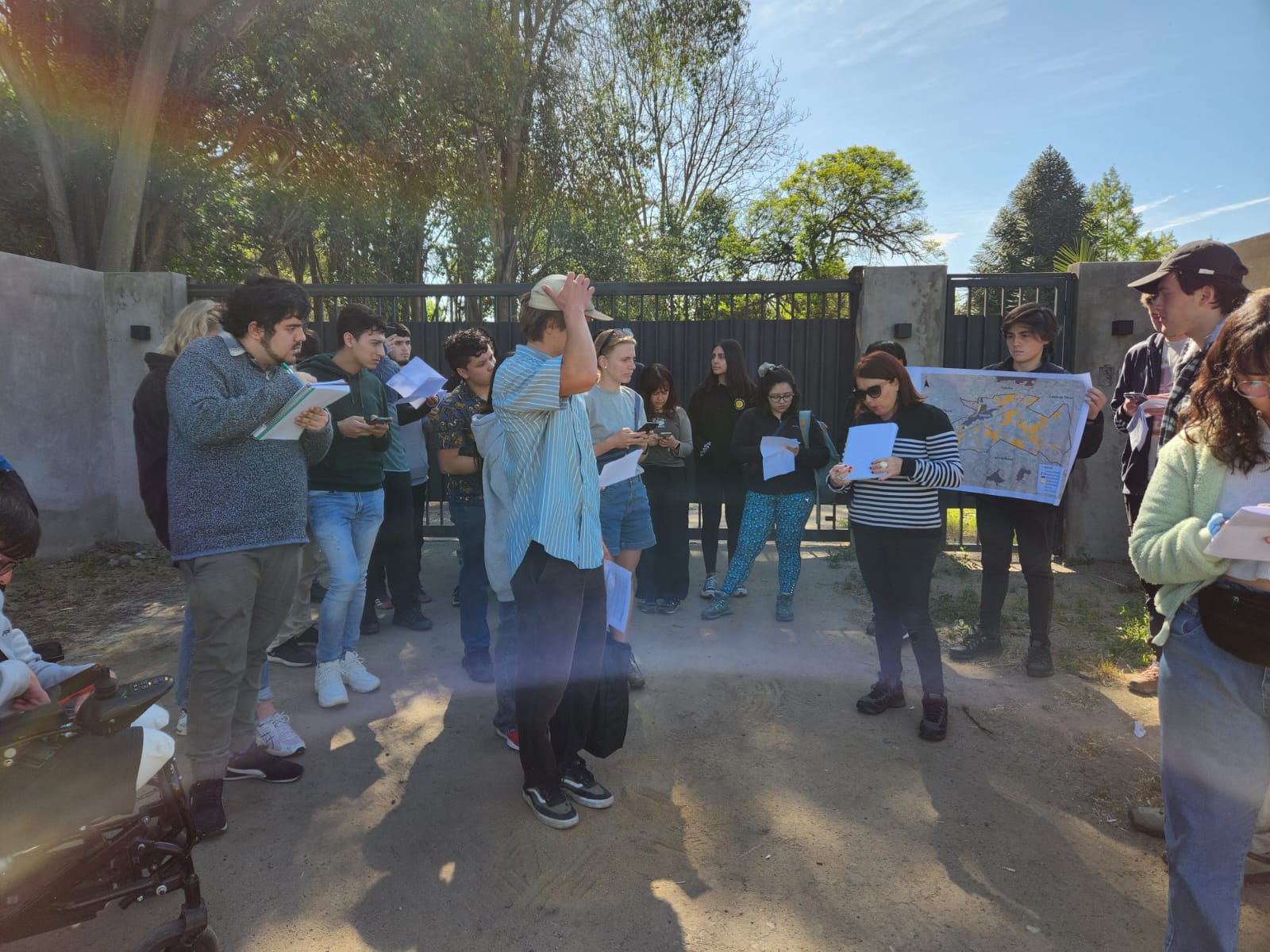 Estudiantes de Geografía de la FAU U. de Chile en terreno con la Prof. Yasna Contreras.