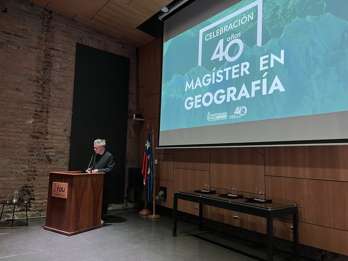 Respecto de la importancia que este programa tiene para la FAU, desde la llegada del Departamento de Geografía en 1985, el representante del Decano Amaya, agregó que desde un inicio “quedó adscrito a nuestra Escuela de Postgrado desde la cual ha incidido y, probablemente este es uno de los puntos relevantes que nos lleva a conmemorar con más ahínco este día, ha incidido significativamente en la incorporación del ejercicio de la investigación científica en esta Facultad. Con orgullo podemos afirmar que la excelencia académica, la perseverancia y la visión de futuro han rendido frutos, posicionándose nacional e internacionalmente, respaldado por sus académicos y académicas, sus estudiantes, egresados y egresadas, todos quienes encarnan el sello institucional y los principios que sostienen al programa, buscando además responder a las necesidades que tiene nuestro país en la comprensión integral de las problemáticas territoriales”.