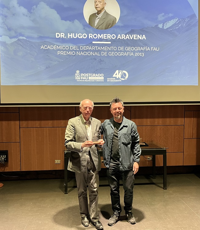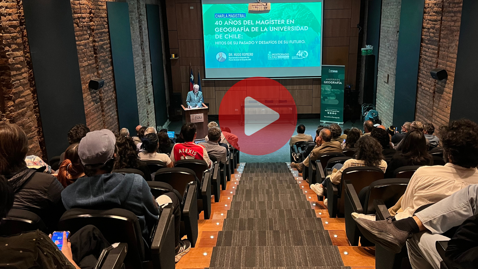 La celebración contó con la Charla Magistral del Profesor Titular, Premio Nacional de Geografía en 2013, Prof. Hugo Romero Aravena, quien dictó la conferencia denominada “40 años del Magíster en Geografía de la Universidad de Chile: Hitos de su pasado y desafíos de su futuro“.