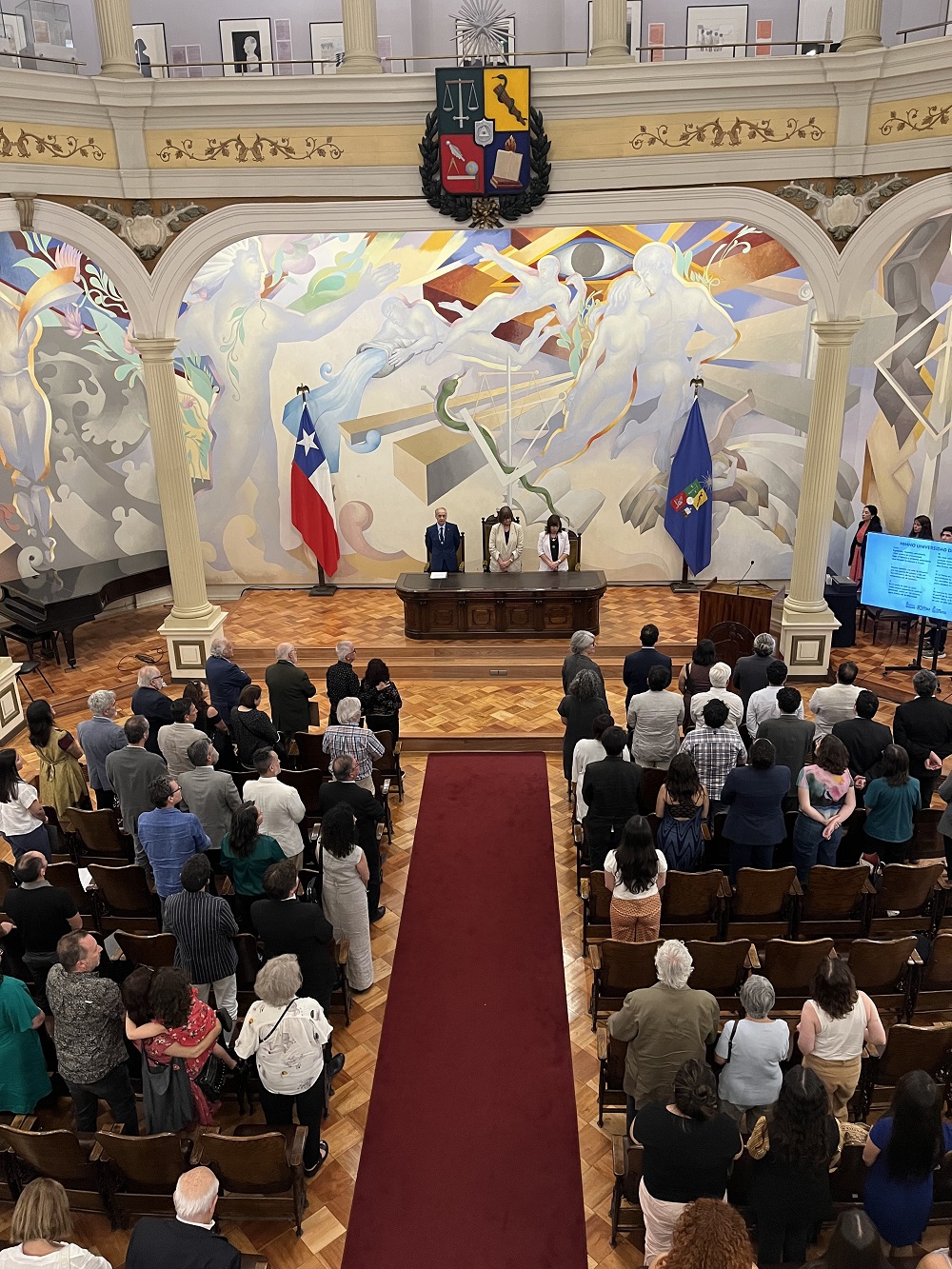 Asimismo, honraron con su asistencia el Decano de la Facultad de Ciencias Físicas y Matemáticas, Prof. Francisco Martínez Concha; el Decano de la Facultad de Artes,Prof. Fernando Carrasco Pantoja; el Decano de la Facultad de Arquitectura y Ambiente Construido de la Universidad de Santiago de Chile, Prof. Rodolfo Jiménez Cavieres y el ex Decano de la Facultad de Arquitectura y Urbanismo, Prof. Leopoldo Prat Vargas, Directores y Directoras de las diferentes Direcciones Integrales de la FAU, de los Departamentos, Escuelas e Institutos de la Facultad, los jefes de carrera, académicas, académicos, funcionarias y funcionarios, amigos y familiares de las y los homenajeados.
