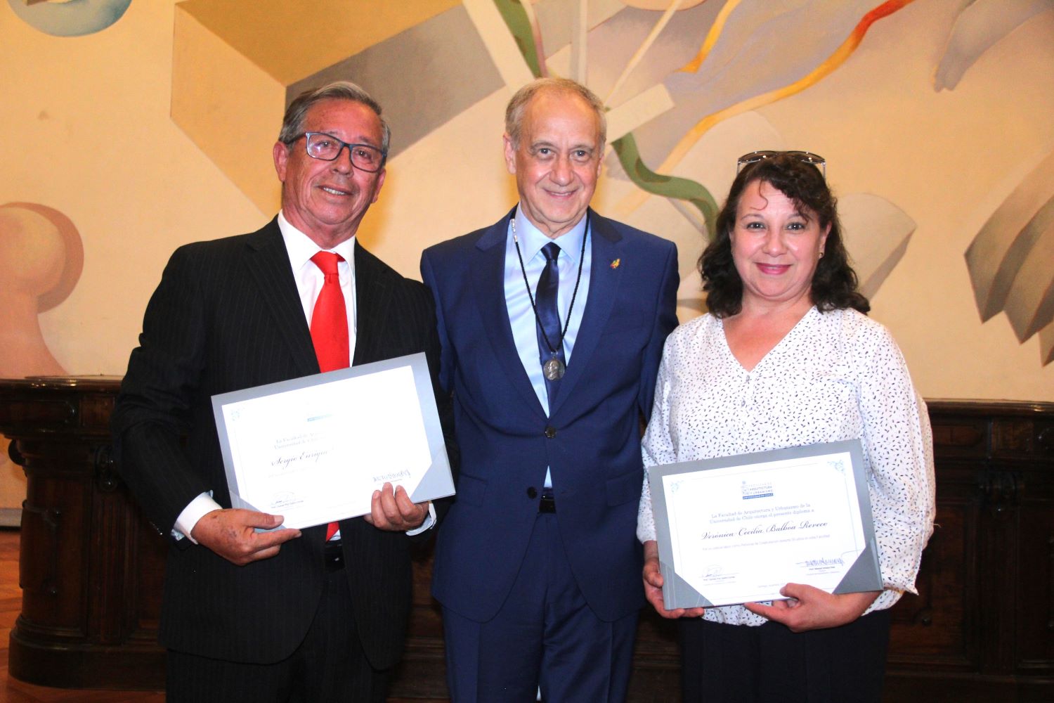 La Universidad de Chile entrega a estos docentes un diploma y una medalla que acredita el grado de profesor titular a académicas y académicos que fueron ratificados con tal reconocimiento durante el año académico anterior, es decir entre marzo de 2023 y enero de 2024. Las y los titulares de la FAU que recibieron dicha distinción fueron: Enrique Walker Rosenberg y Lorenzo Berg Acosta.
