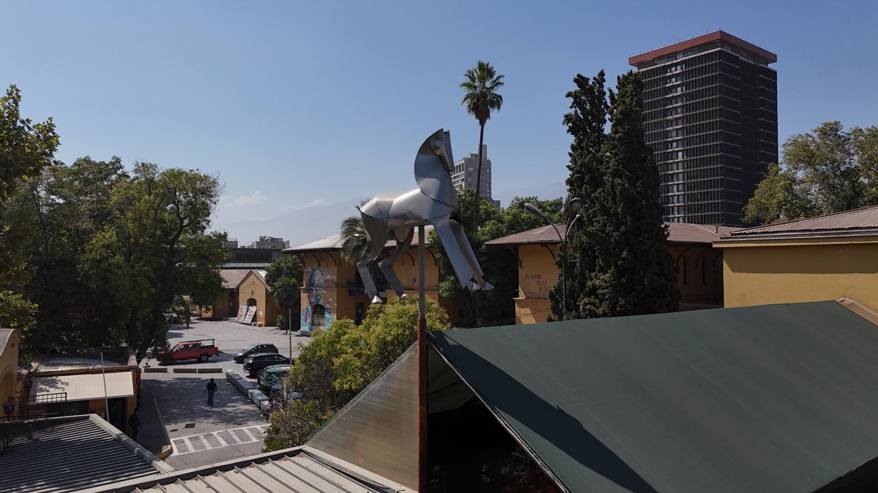 Su compromiso con el enseñar y aprender lo llevó a trabajar en diversos proyectos de investigación que en la FAU siempre estarán presentes. Tenemos por un lado la hipoveleta Magna que hicimos con Franklin y Osvaldo Muñoz, que se encuentra en la cumbrera de la cafetería. Cuyo objetivo no sólo era indicar el norte, sino recordar la presencia de la antigua caballeriza que hubo antes de la FAcultad. De igual forma, las aves de patio que estaban entre los pabellones D y E, conocido como el jardín de los enamorados, donde rescatamos la gallina luego de que se robaran todos los pollitos. Este proyecto también surgió en memoria del antiguo Mercado que aquí funcionaba junto al liceo N°5 de niñas. El famoso y circulado ajedrez público que se ubica hoy en biblioteca y el que siempre proyectamos estuviera disponible para toda la comunidad, nuevamente invitando al pensamiento reflexivo y la estrategia detrás del juego. El paramento FAU que se encuentra al costado del pabellón A como también el de Andrés Bello a los pies de la torre 15. Todos proyectos ejecutados por nosotros bajo la dirección y voladuras de Franklin, que aterrizábamos tomando el principio de la intervención laminar, respetando el lenguaje del metal hasta alcanzar la expresión fluida de la forma.