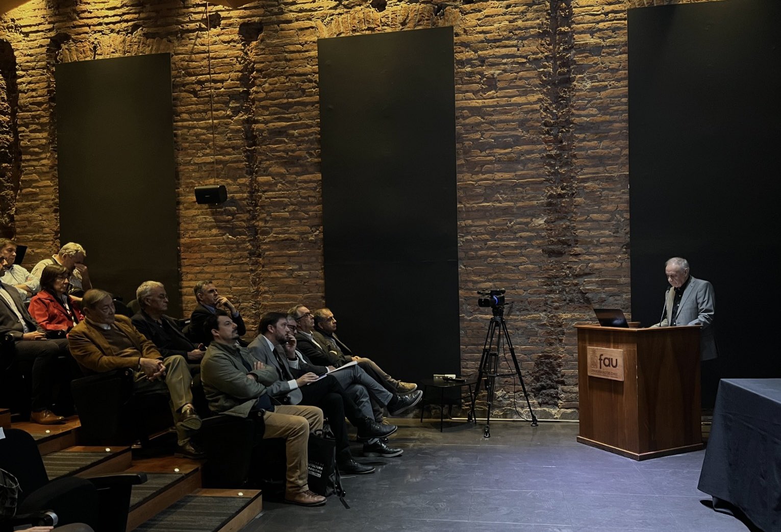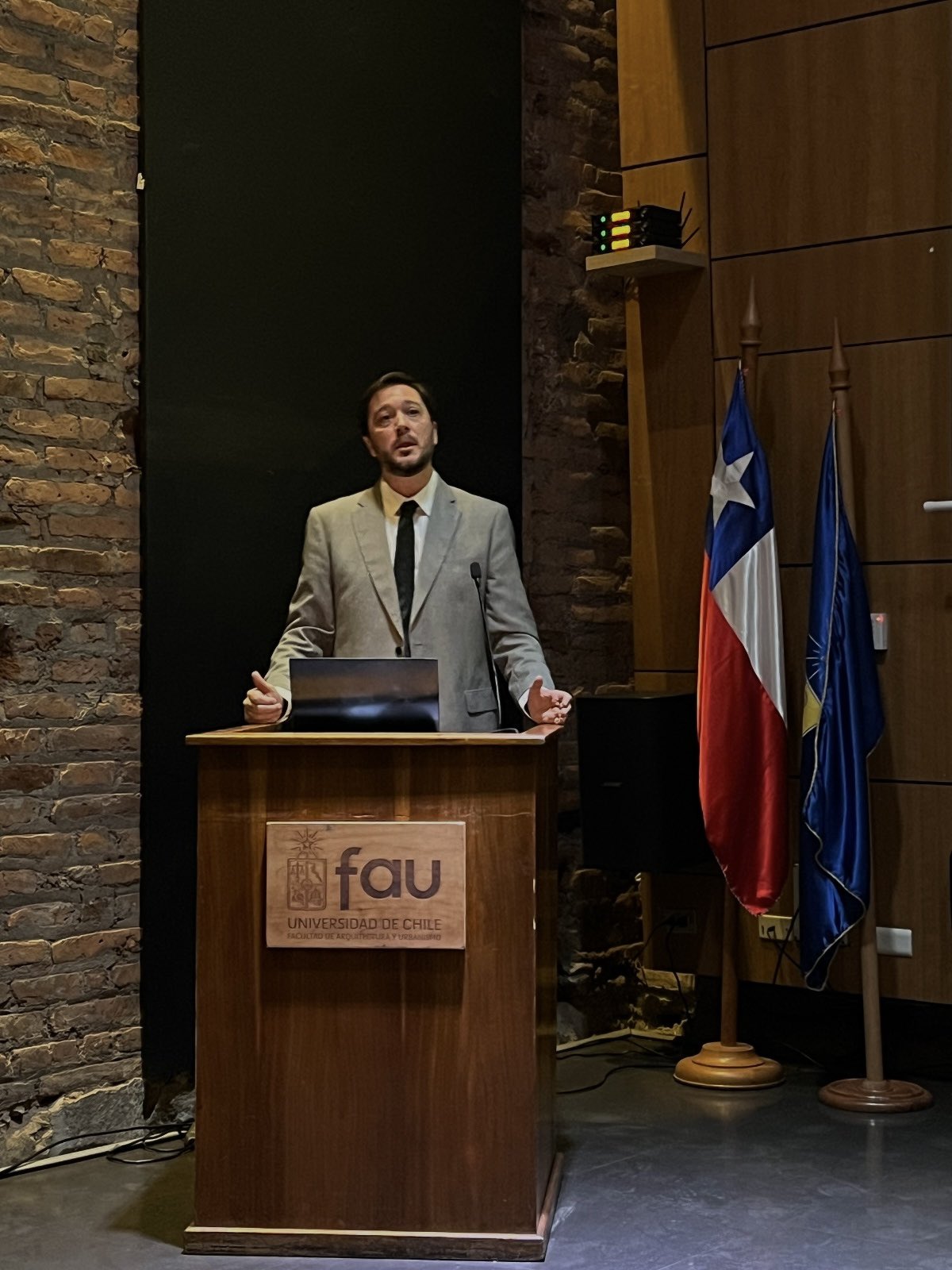 En sus palabras de apertura del año académico, el Decano Manuel Amaya, junto con agradecer la participación de todas y todos y en especial del conferencista Sebastián Bowen, señaló que el enfoque multiescalar que promueve la Facultad, que va desde el diseño de viviendas hasta la planificación territorial, constituye un sello distintivo de la FAU.