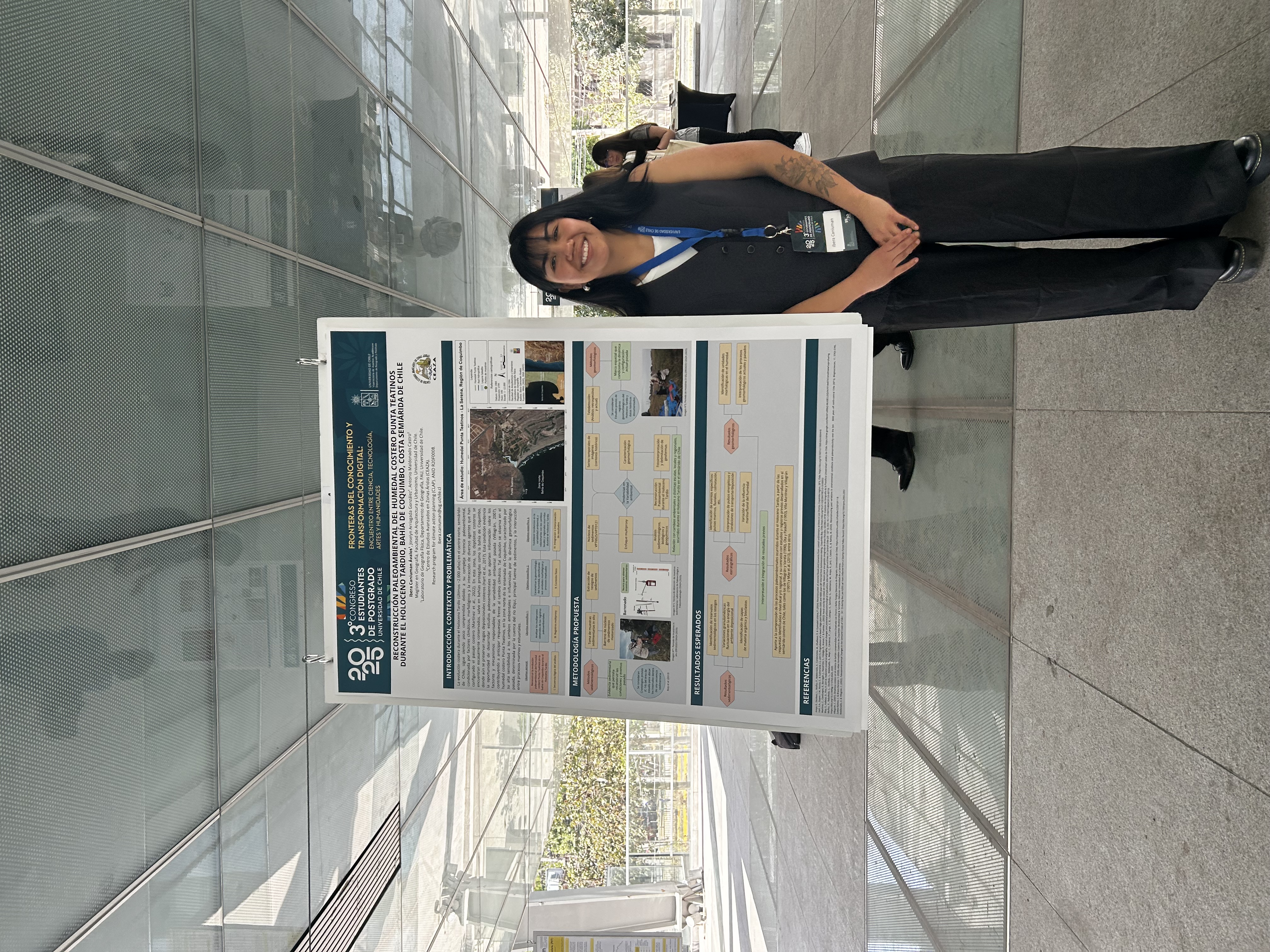 En esta oportunidad y como única representante de la FAU, la estudiante del Magíster de Geografía, Ibera Caniuman, presentó un póster vinculado a su investigación titulada: “Reconstrucción paleoambiental del humedal costero Punta Teatinos durante el Holoceno Tardío, Bahía de Coquimbo. Costa semiárida de Chile.”