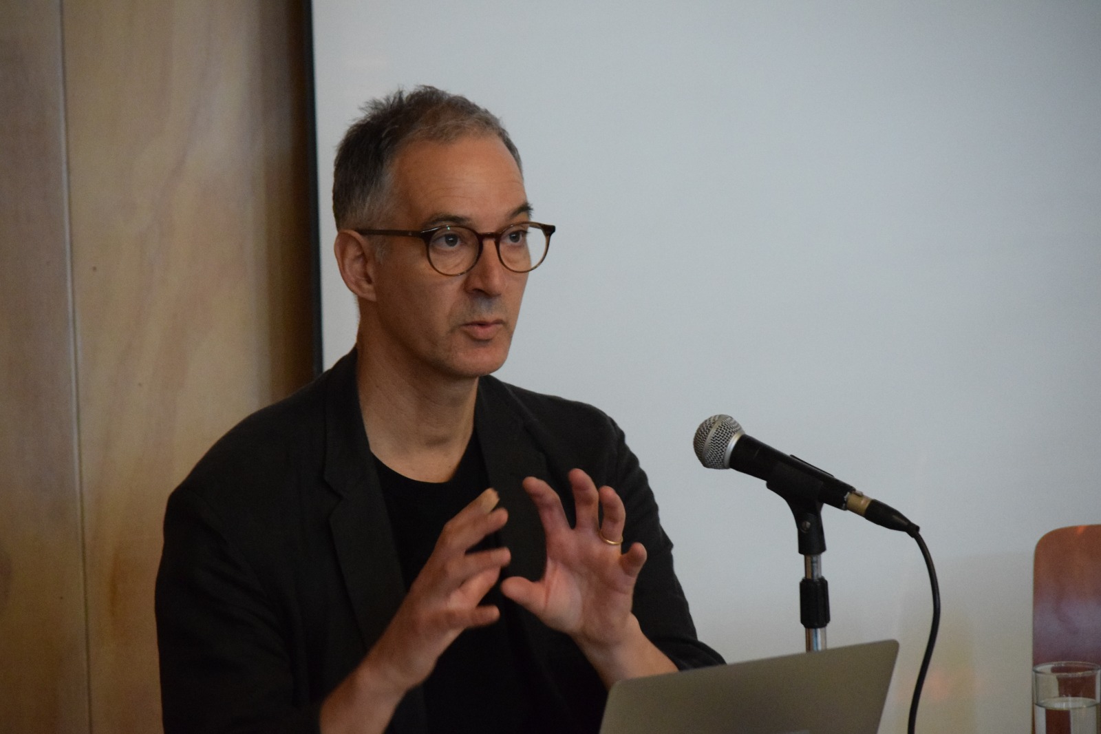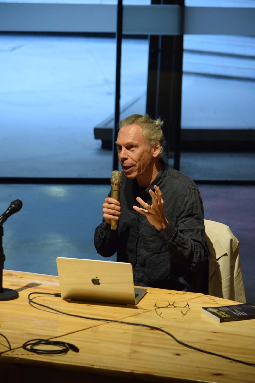 La segunda conferencia, Architecture as a Planetary Medium, fue dictada por el arquitecto Dietmar Offenhuber, académico de Departamento de Arte + Diseño en Northeastern University, y profundizó en la relación entre infraestructuras, datos e inteligencias territoriales. Offenhuber invitó a reconsiderar la arquitectura más allá de los objetos construidos, planteando que ésta puede operar como un medio capaz de registrar, revelar y modelar dinámicas microscópicas que no aparecen a simple vista. Su charla conectó con diversas mesas dedicadas a tecnologías, sensores ciudadanos y visualización crítica de sistemas ambientales.