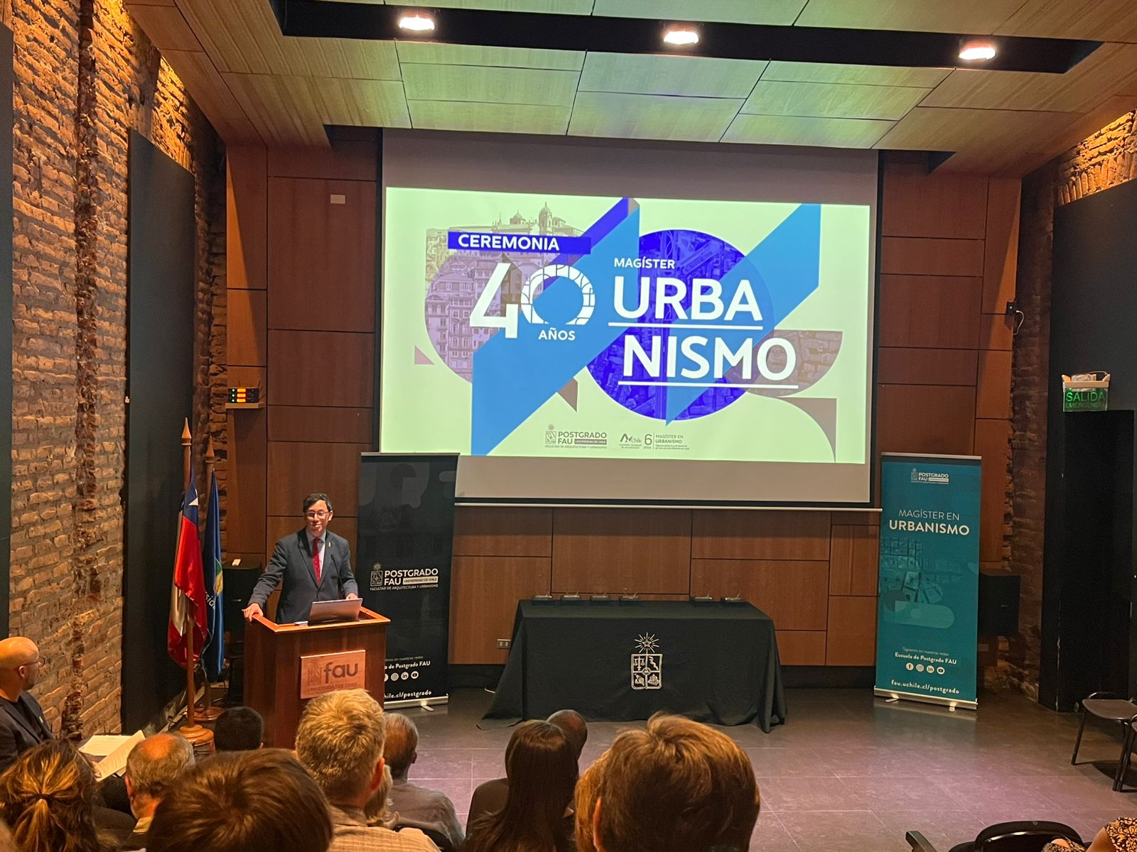El acto celebrado el día jueves 13 de noviembre, reunió a autoridades universitarias, académicas, egresados, estudiantes, funcionarios y representantes del sector público y privado, quienes destacaron la historia y el impacto del programa en la formación de profesionales especializados en el desarrollo urbano. Presidió la actividad el decano subrogante Daniel Opazo, junto al director de la Escuela de Postgrado, Luis Campos Medina, y el director del Departamento de Urbanismo, Jorge Inzulza.