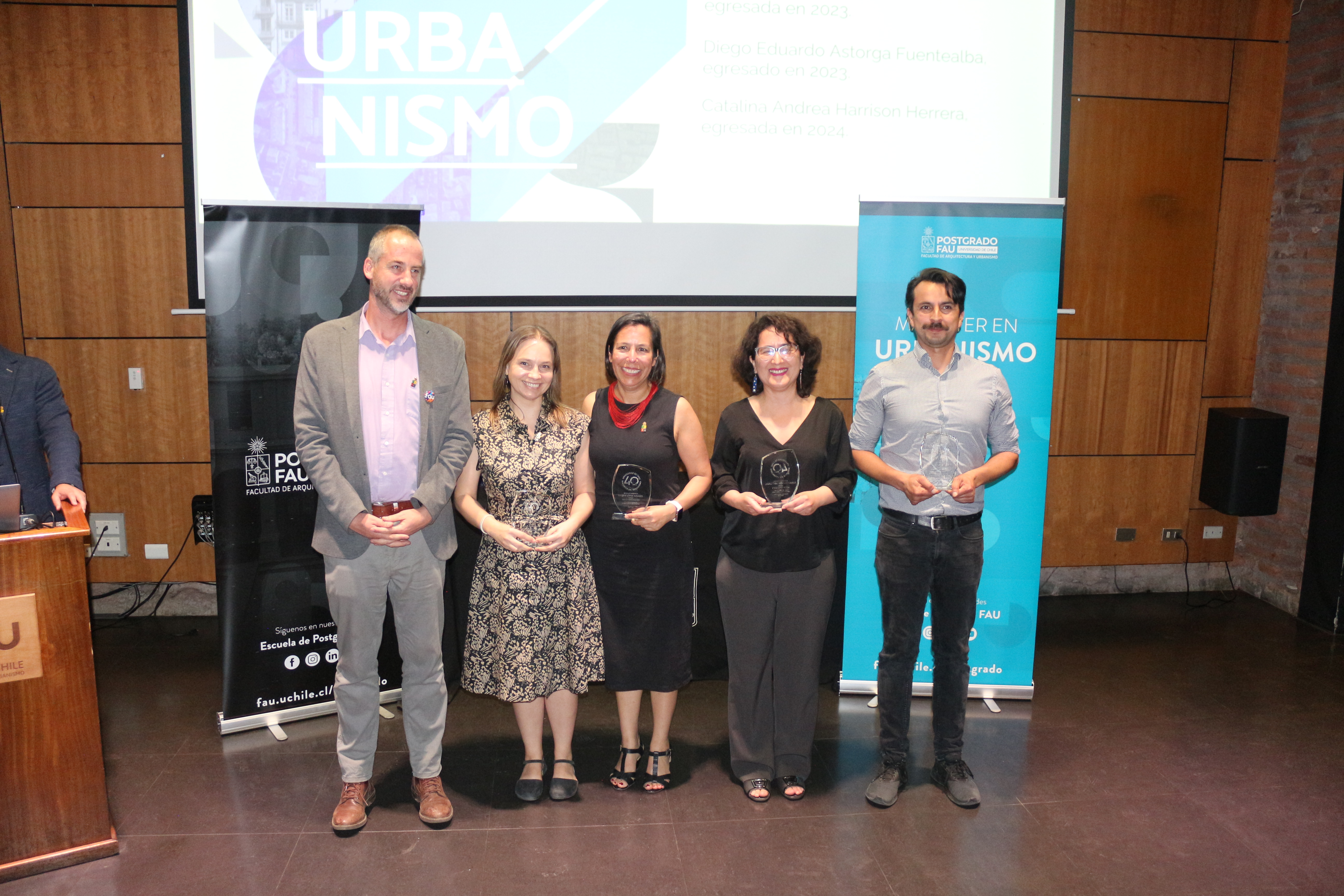 Las y los estudiantes distinguidos fueron: María Valeria López Olivares, egresada en 2022 del Magíster en Urbanismo; Elena Pontigo Arestizábal y Diego Eduardo Astorga Fuentealba, ambos egresados en 2023 del Programa y Catalina Andrea Harrison Herrera, egresada en 2024 del Magister.