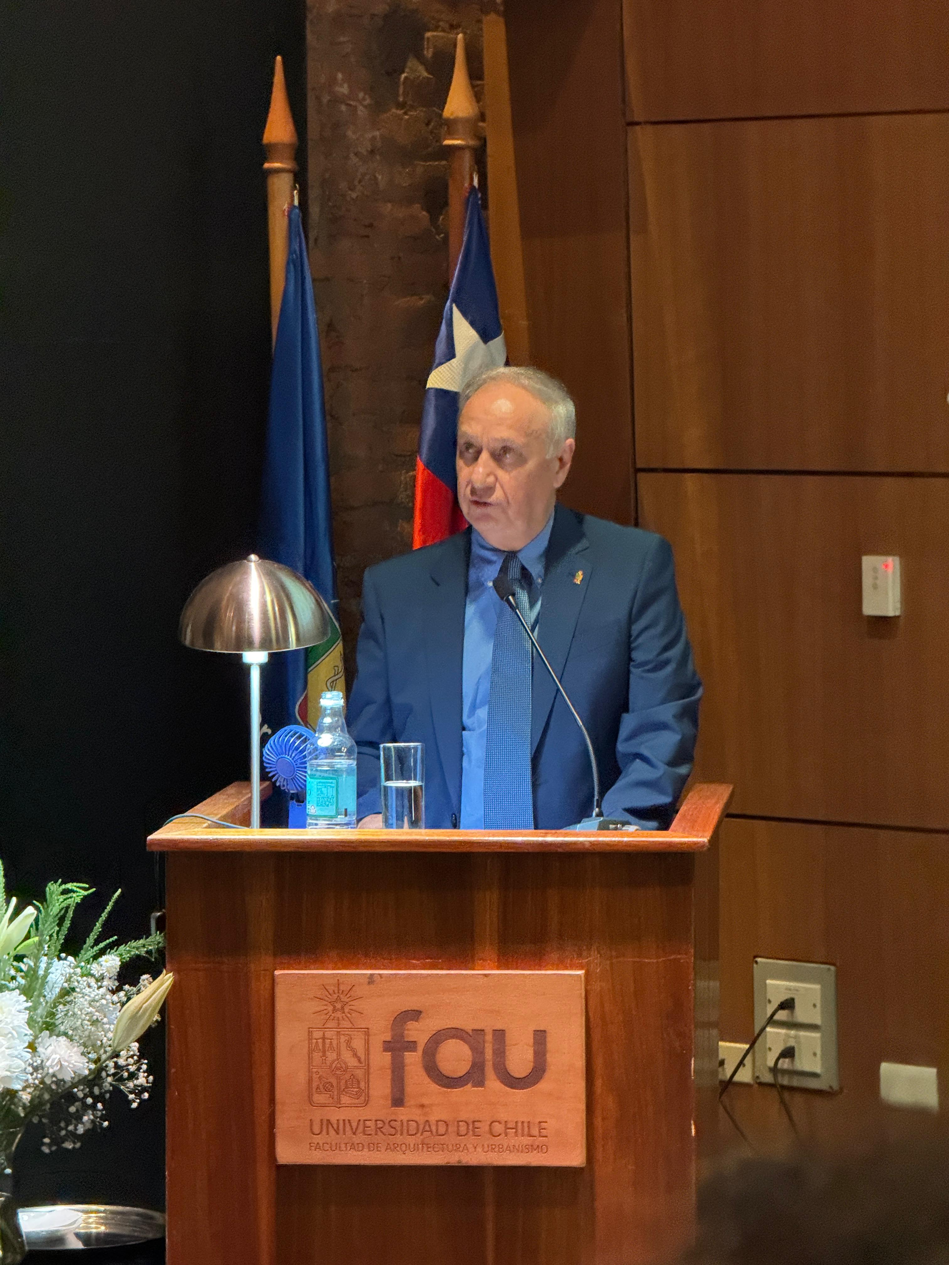 El Decano Manuel Amaya ofreció las palabras finales, destacando el compromiso de quienes han dedicado décadas de servicio a la Universidad de Chile y subrayando el rol público que históricamente ha caracterizado a la Facultad. “Esta ceremonia es un reconocimiento a la memoria, al trabajo sostenido y al aporte concreto que tantas personas han hecho para que hoy la FAU siga siendo referente nacional”, señaló.