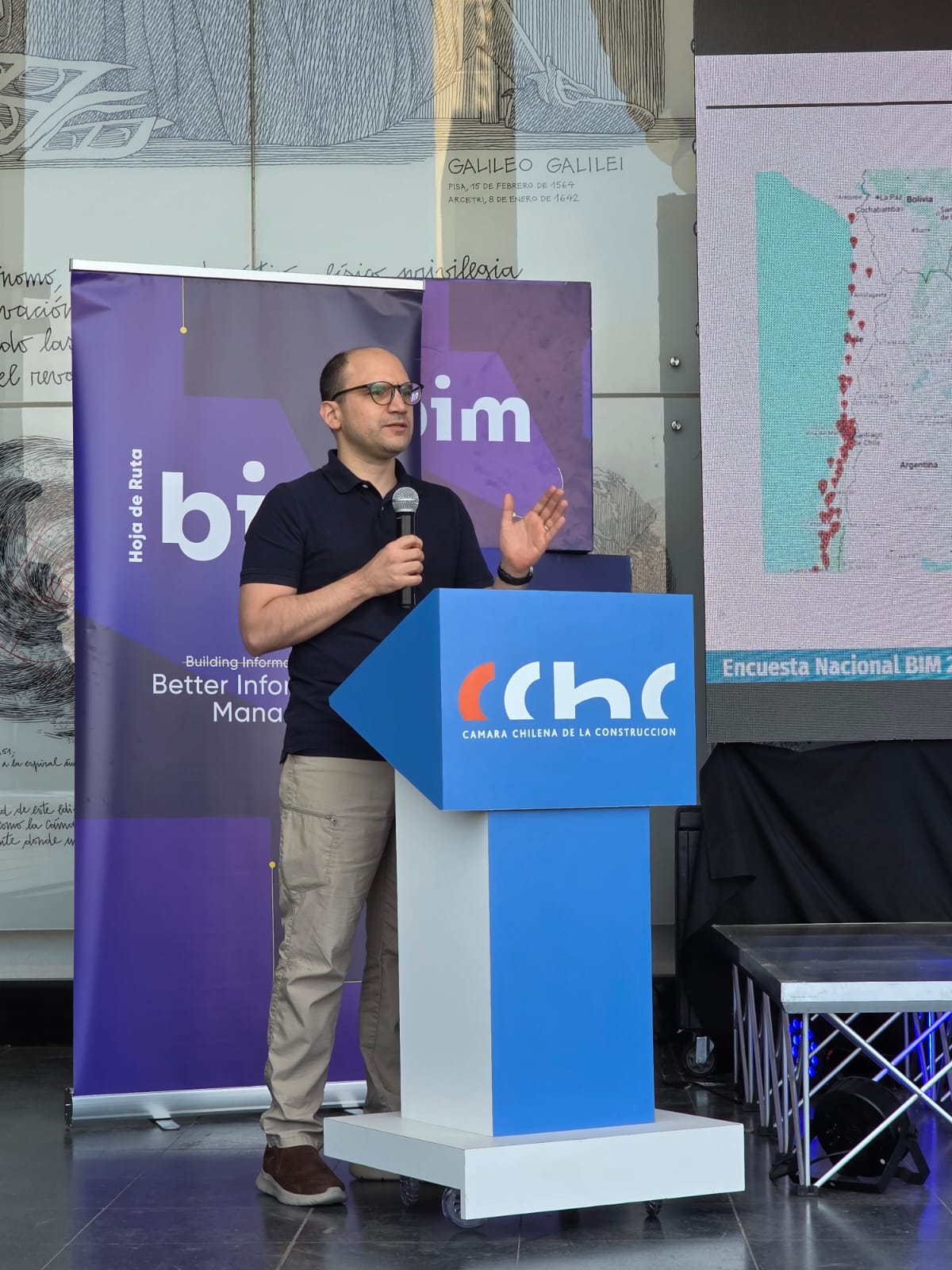 El pasado miércoles 10 de diciembre se presentaron los resultados de la Encuesta Nacional BIM 2025 en un evento realizado en la Cámara Chilena de la Construcción (CChC). La exposición estuvo a cargo del director del estudio y profesor del Departamento de Arquitectura Mauricio Loyola y convocó a cerca de un centenar de representantes de instituciones públicas, privadas, académicas, gremiales y de destacadas empresas del sector.